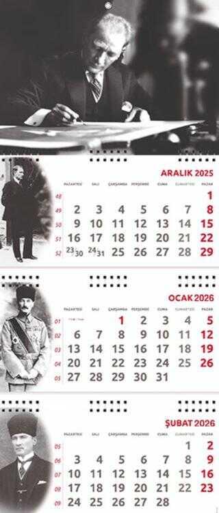 2026 Atatürk Gemici Duvar Takvimi - İmza3 Parça Spiralli 2026 Atatürk Gemici Duvar Takvimi• Ürün Ebadı: 27,5x65 cm• Blok Ebadı: 27,5x13,5 cm• Üst Karton Ebadı: 27,5x20 cm• Yapraklar: 80 g 1. Hamur• Alt Karton: 350 g Bristol• GöstergeliTanıtım MetniTanıtım Metni