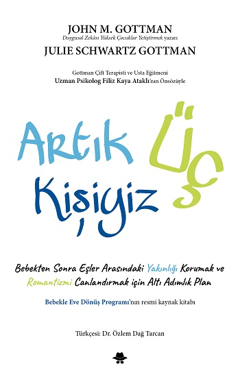 KUTLARIZ! BİR BEBEĞİNİZ OLDU. AMA BİR EVLİLİĞİNİZ DE OLDUĞUNU UNUTMAYIN.Bebeğinizin doğumu müthiş bir deneyimdir ama iki kişilik yaşamdan üç kişilik yaşama geçiş en sağlam ilişkileri bile zorlar. Love LabTM uzmanları John ve Julie Schwartz Gottman Artık Üç Kişiyiz’de bir yandan bu zorlu geçişi gerçekleştirirken bir yandan da sağlıklı bir evlilik sürdürebilmenin kilit yöntemlerini açıklıyor. Bu yöntemleri kullanarak yakınlık ve romantizme odaklanabilecek; eleştiri ve asabiyet atmosferinin yerine takdir ve beğeni ortamı getirecek; lohusa depresyonunu önleyecek; fiziksel, duygusal ve zihinsel sağlığınızı koruyacak; aynı zamanda bebeğinizin bilişsel ve davranışsal gelişimini destekleyen bir ev ortamı oluşturacaksınız. Artık Üç Kişiyiz, ebeveynliğe geçişin “usta” çiftlerini “felaket” çiftlerden ayıran örnekleri ve çeşitli testleriyle ilişki durumunuzu tartmanızı sağlayacak, kapsamlı önerileri ve çok yönlü egzersizleriyle de evlilik ilişkinizi zorlandığı alanlarda yeniden düzlüğe çıkarmanıza yardım edecektir. Artık Üç Kişiyiz aynı zamanda Bebekle Eve Dönüş ebeveyn eğitim programının resmi kaynak kitabıdır.