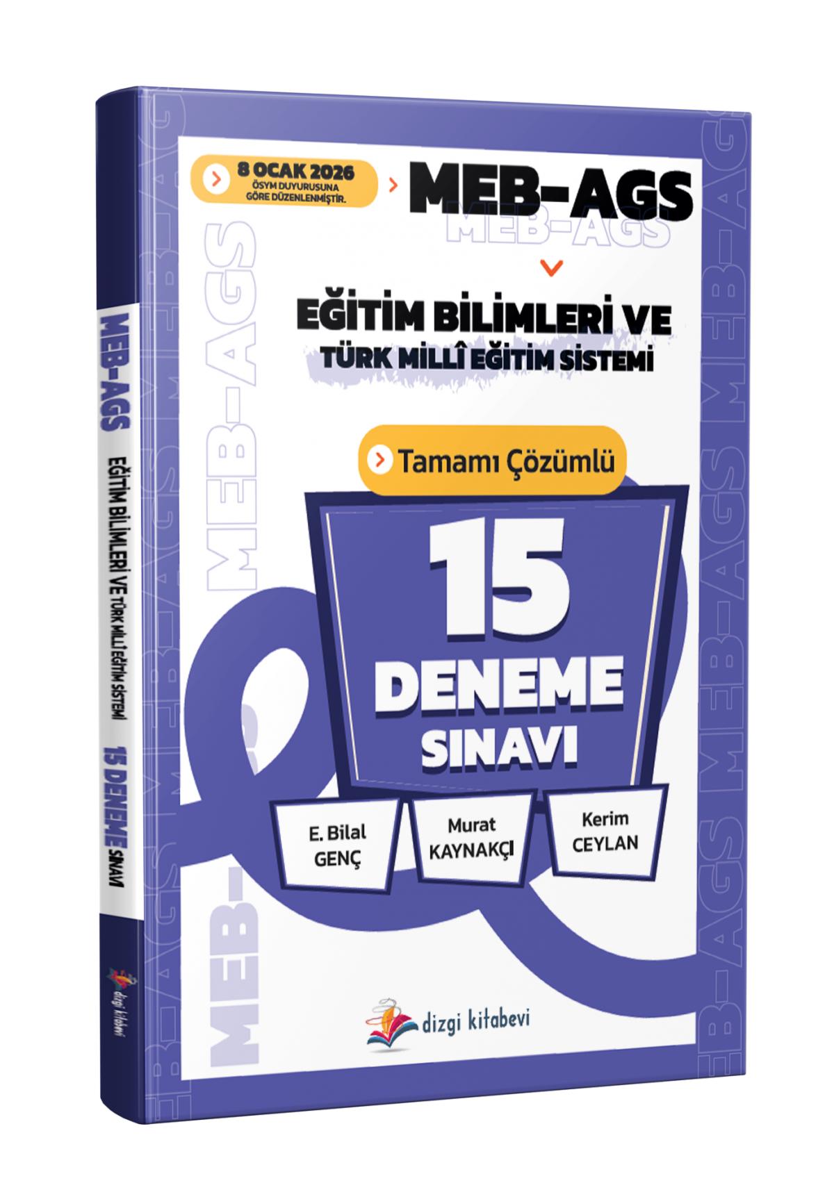 Dizgi Kitap 2026 MEB AGS Eğitim Bilimleri ve Türk Milli Eğitim Sistemi Tamamı Çözümlü 15 Deneme Sınavı E. Bilal Genç, Murat Kaynakçı, Kerim Ceylan