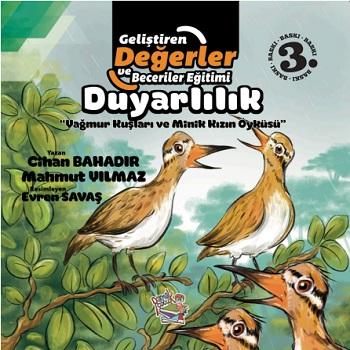 Duyarlılık, dışarıdan bize etki eden duyguları algılayabilme yeteneğidir. Bu dünyadaki denge- nin korunması, tüm canlıların yaşam hakkının korunması herkesin duyarlı olması gereken konulardan biridir. Bir gazete haberinden esinlenerek yazılan “Yağmur Kuşları ve Minik Kızın Öyküsü”, bir yağmur kuşu ailesi için mücadele eden minik bir kızın hikâyesidir. Sizler de çevrenizdeki yağmur kuşlarının, akşam melteminde salınan balıkçıl kuşlarının, su birikintisine atlayan kurbağanın, müziğin, yağmur altındaki korkuluk için üzülen çocuğun, sokak kedilerinin yaşamdaki hikâyelerinin farkında mısınız?(Tanıtım Bülteninden)