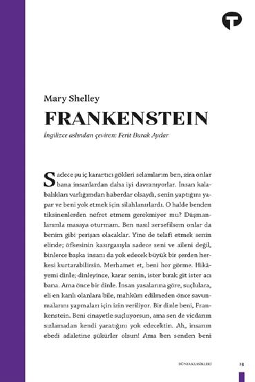 Victor Frankenstein’ın alışılmadık yöntemlerle laboratuvar ortamında can verdiği yaratık, çevresindekiler tarafından hor görüldükçe bir insanlık düşmanı haline gelir. Mary Shelley’nin on sekiz yaşında kaleme aldığı ve ilk bilim kurgu romanı sayılan Frankenstein, yozlaşmış bilimin gebe olduğu sorunlardan yola çıkarak ameliyat masasına bu kez insanı yatırıyor. Tanıtım MetniTanıtım Metni