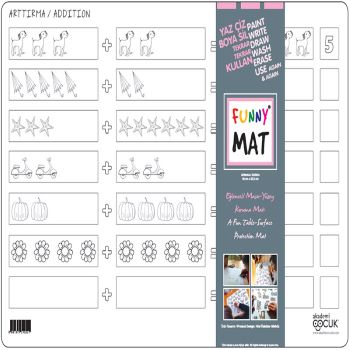 Funny Mat, her türlü aktivite için masa ve yüzey koruyucu olarak kullanılır.Üzerinde; yemek yiyebilir, boyama yapabilir, kil ve oyun hamuru şekillendirebilir, ders çalışabilirsiniz.Funny Mat’in kendisi de aynı zamanda eğlenceli bir Aktivite Materyali’dir.Su bazlı keçeli kalem ile Funny Mat üzerindeki desenleri istediğiniz gibi boyayıp renklendirebilirisiniz.Funny Mat ‘i suyun altına tuttuğunuzda boyalar hemen çıkacak ve defalarca farklı renklere boyamanız mümkün olacak.Funny Mat ile eğlence şimdi başlıyor! Kullanım Önerileri:Funny Mat kirlendiğinde yıkanabilir ya da kolayca silinebilir.Sıcak maddeler ile temas ettirilmez.Bulaşık makinesinde yıkanmaz. Funny Mat, PP den üretilmiştir ve çocuk kullanımına uygundur.Tanıtım MetniTanıtım Metni