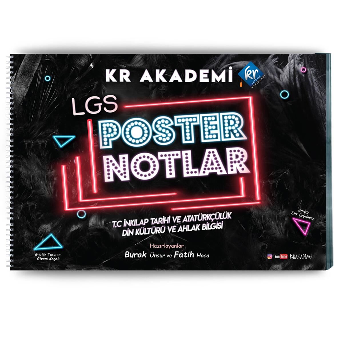 Defter açma kapama yönünde hazırlanmış;Tüm poster sayfaları kalın kuşe kağıda basılmıştır.Eserin oluşturulmasında MEB’in belirlediği müfredat ve kazanımlaresas alınmış,QR kod uygulaması ile interaktif eğitim modeli uygulanmıştır.QR Kodu okutup her sayfanın konu anlatımı videosunaulaşabilirsiniz.LGS’de unutulmaması gereken yerlerin altını çizen,Konuları kapsamlı bir özet halinde sunan
