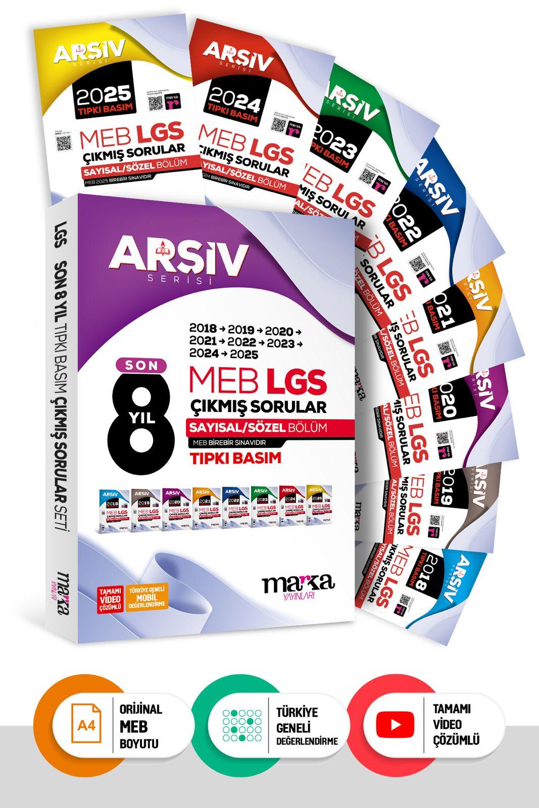 Marka Yayınları LGS 8. Sınıf Son 8 Yıl  Arşiv Serisi LGS Tıpkı Basım Fasikül Fasikül Çıkmış Sorular Tamamı Video Çözümlü
