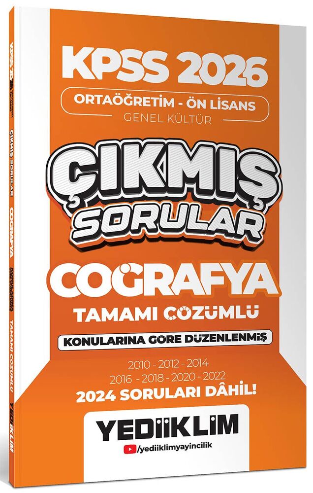 Yediiklim Yayınları KPSS 2026 Ortaöğretim-Önlisans Coğrafya Konularına Göre Çıkmış Sorular 2024 soruları dahil